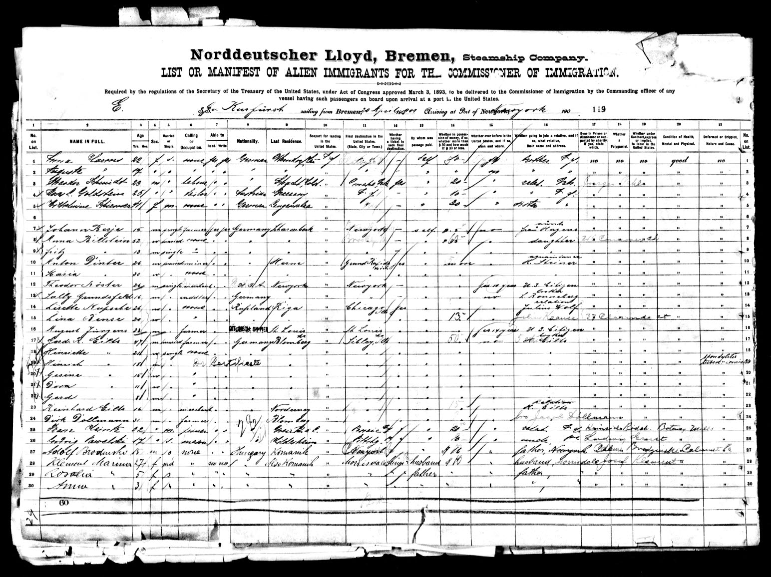 Es liegt eine Passagierliste mit Auswanderern aus Blomberg sowie eine Auflistung der ersten Siedler des Kolonats Blomberg vor.
